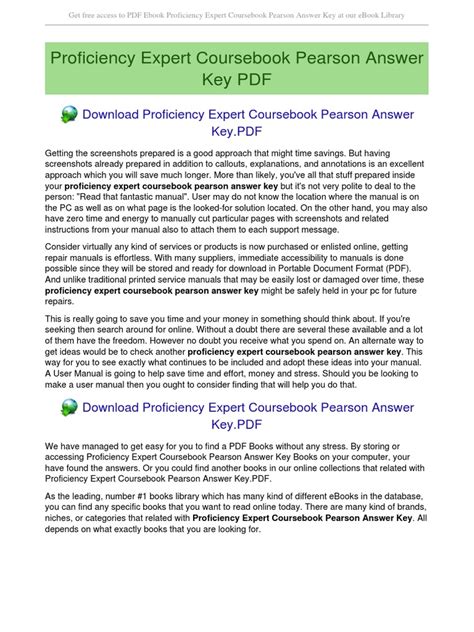 [UniqueID] - Read Online proficiency expert coursebook pearson answer key Hardcover